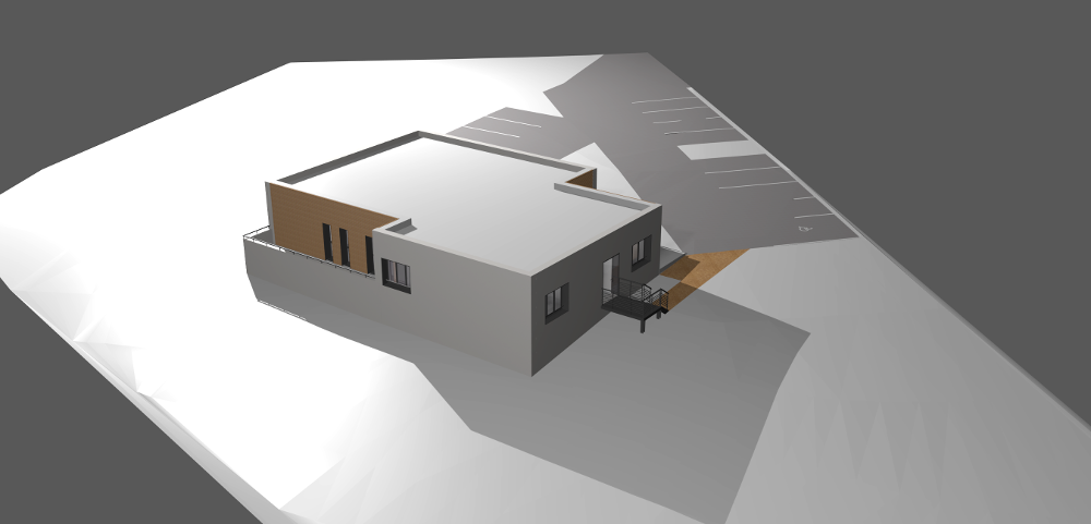 Création de bureau. La demande client comprenait notamment: - Création de 8 à 10 bureaux - 2 accès distincts - Terrasse non visible depuis l'entrée principale - Espace commun - Possibilité d'extension - Expression architecturale simple